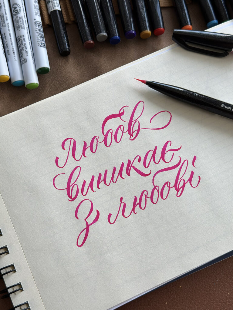 Ми підготували для вас декілька романтичних фраз-заготовок та різні види брашпенів для того, щоб ви спробували, чим інструменти відрізняються один від одного.